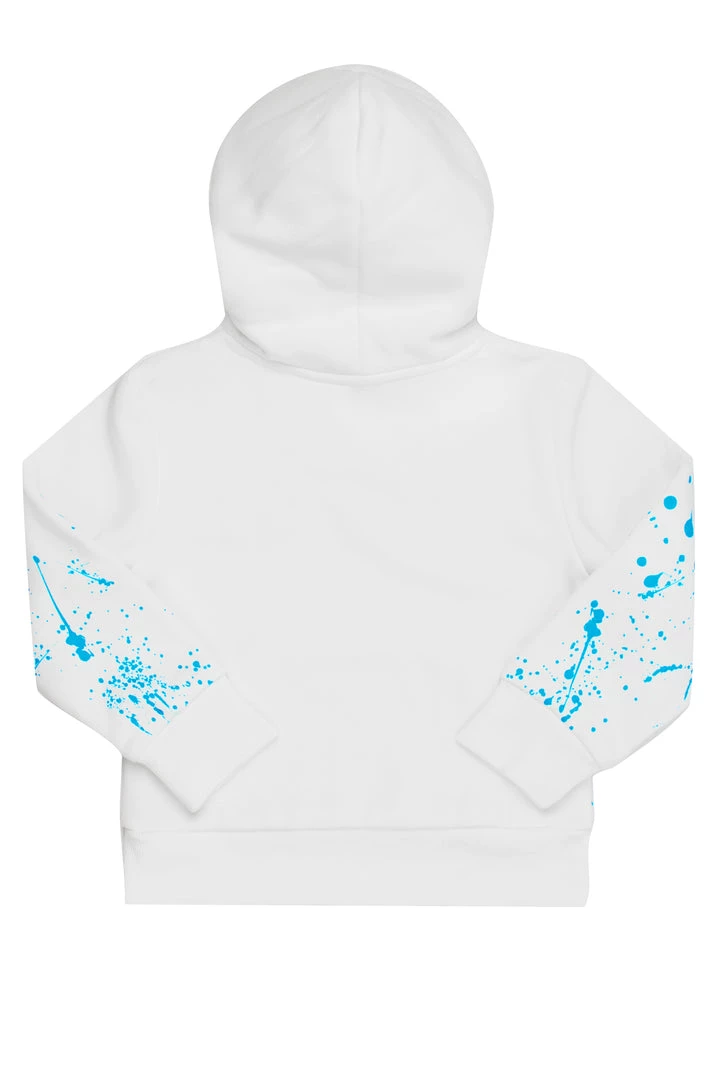 Rockstar Original Boy’s hoodie in pure white. Featuring a RSO logo with custom paint splatter print throughout. This style is designed with a drawstring hood, a front pocket and premium cotton threading to keep you cool and comfortable.