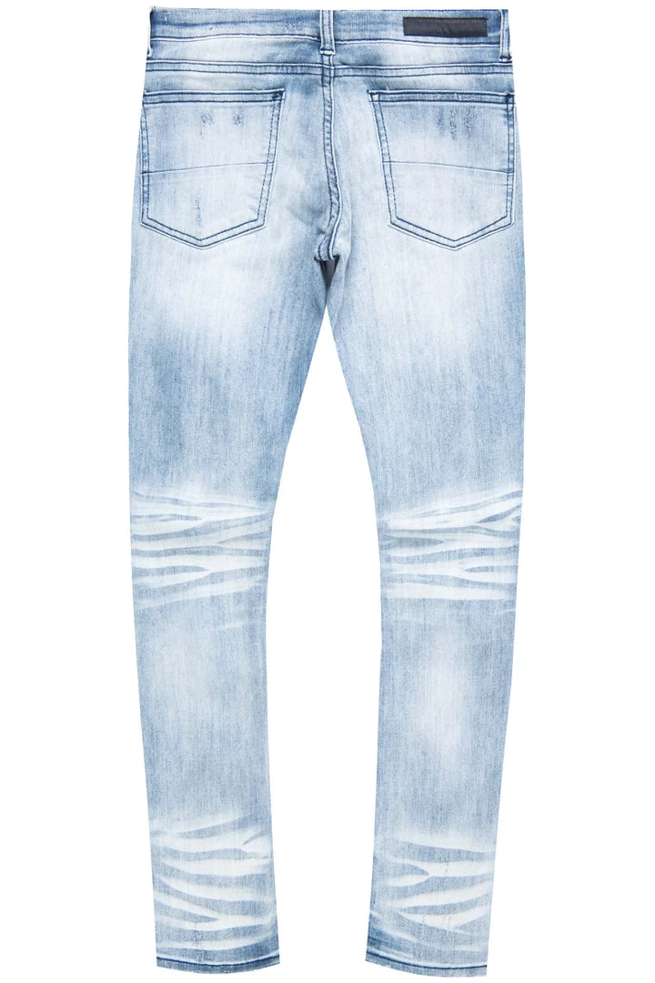 Rockstar Original Kid’s denim jean in light wash. Featuring a signature moto biker design with a coin pocket and high quality front button closure. These jeans accent premium cotton threating for a comfortable style that will move with your ‘Lil Rockstar all day!