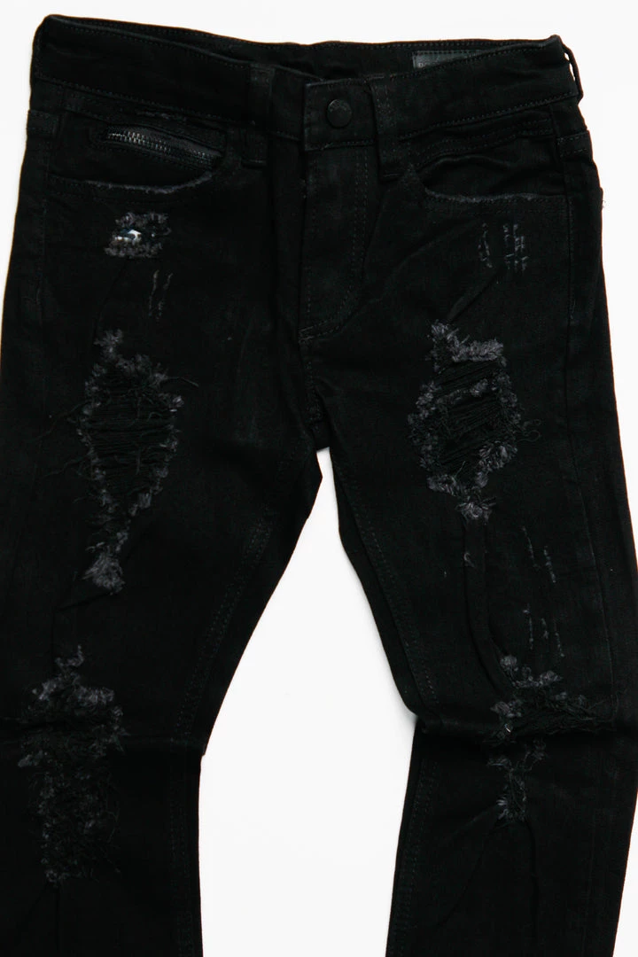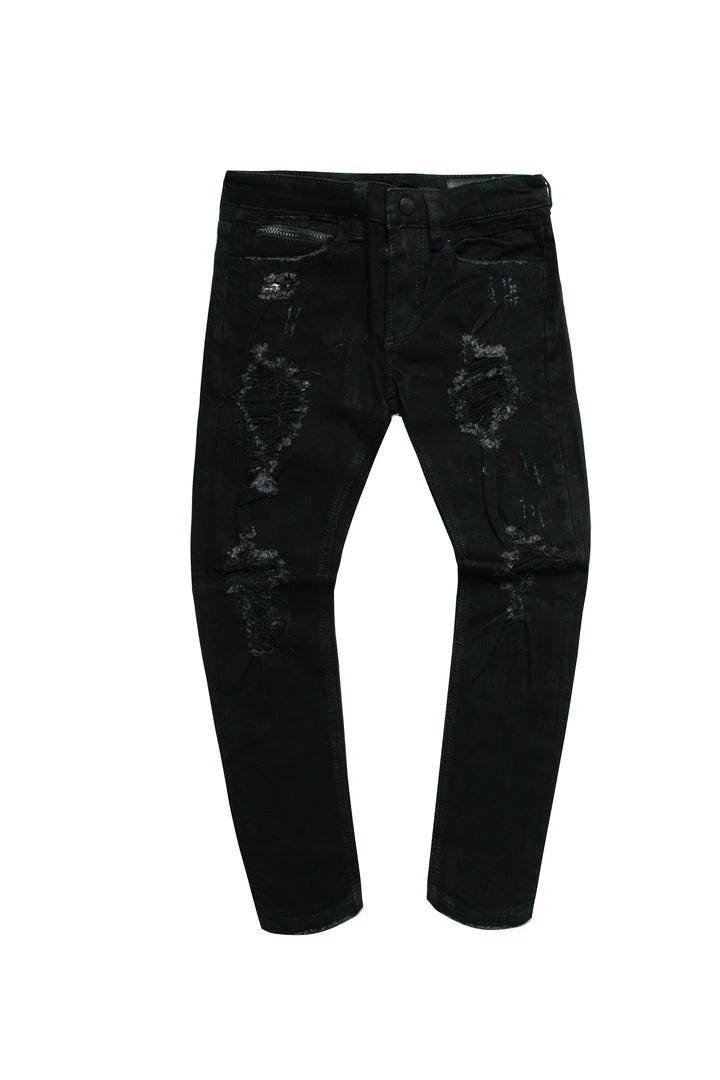 Rockstar Original boy’s denim featuring distressed and ripped details with a high quality zipper coin pocket.