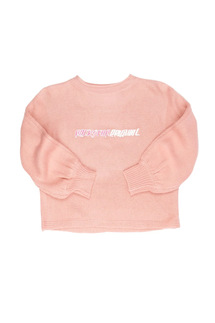 Rockstar Original Girl’s sweater in blush. Featuring a soft knit design and printed RSO logo for that added touch of simple and sweet. This sweater will have your Mini Me steal the show!