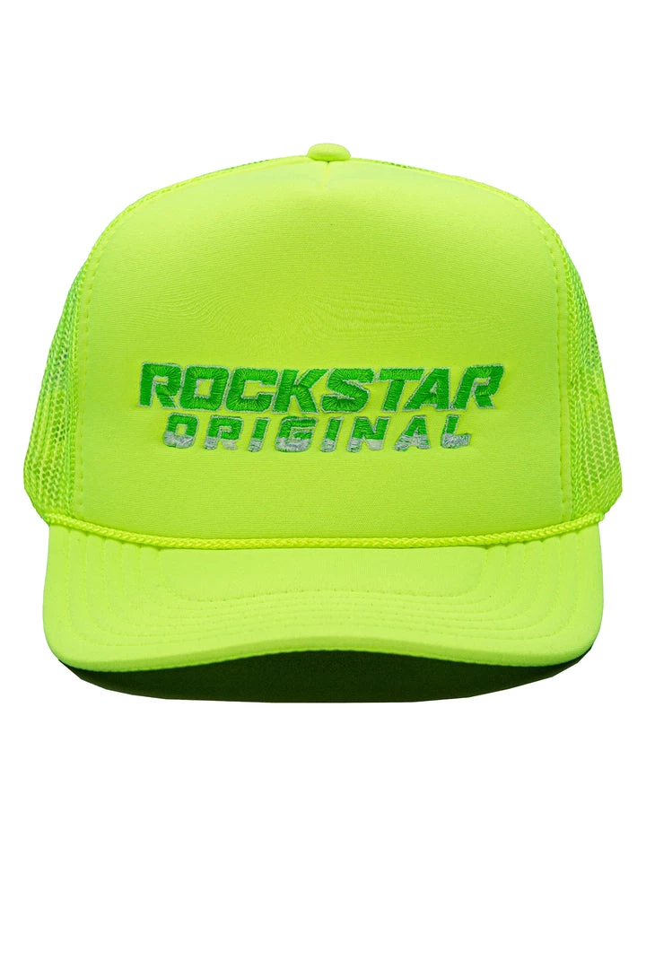 Rockstar Original men’s hat featuring a trucker design with a two tone RSO logo.
