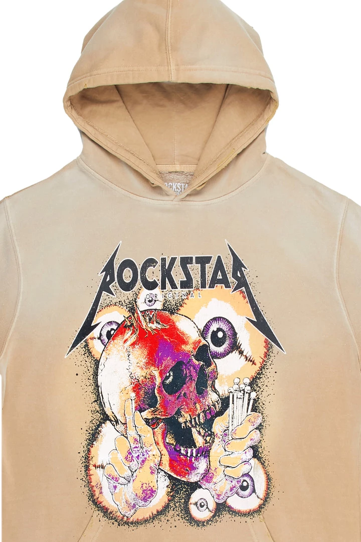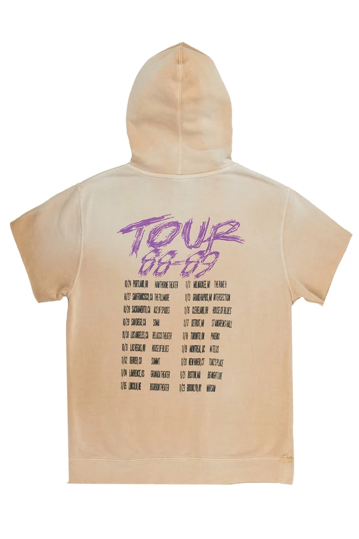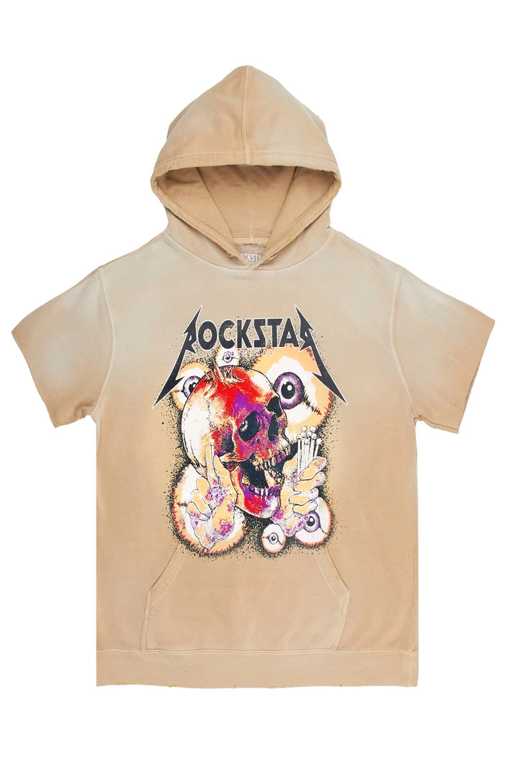 Rockstar Original Men’s vintage style short sleeve hoodie in beige. Featuring a printed RSO logo with custom graphics to match. Accenting distressed details, a bleached finish and a rib knit hemline. Designed with premium cotton threading for a comfortable classic tee.