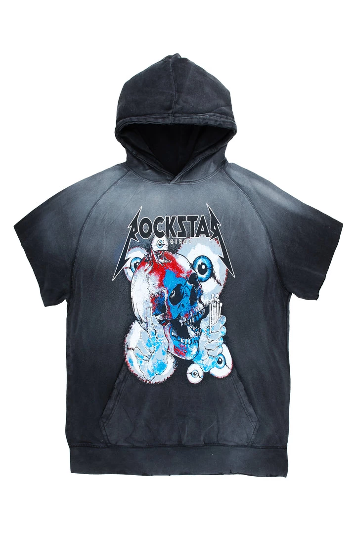 Rockstar Original Men’s vintage style short sleeve hoodie in black. Featuring a printed RSO logo with custom graphics to match. Accenting distressed details, a bleached finish and a rib knit hemline. Designed with premium cotton threading for a comfortable classic tee.