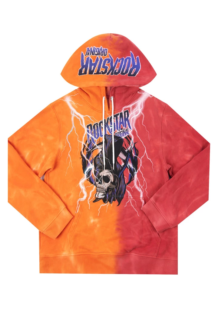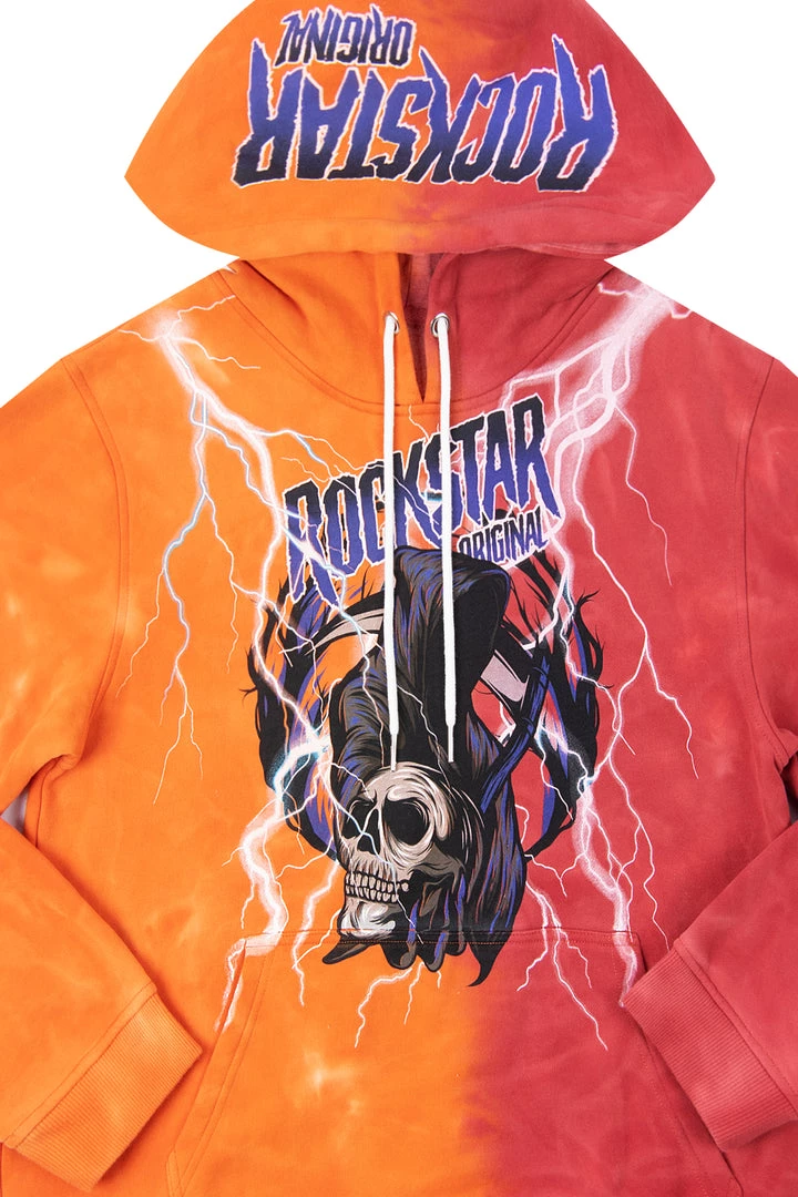Rockstar Original Men’s hoodie featuring a split tie dye wash and skull graphic designing. Accenting a RSO logo, front pocket with drawstring hoodie and premium cotton for comfort and convenience.