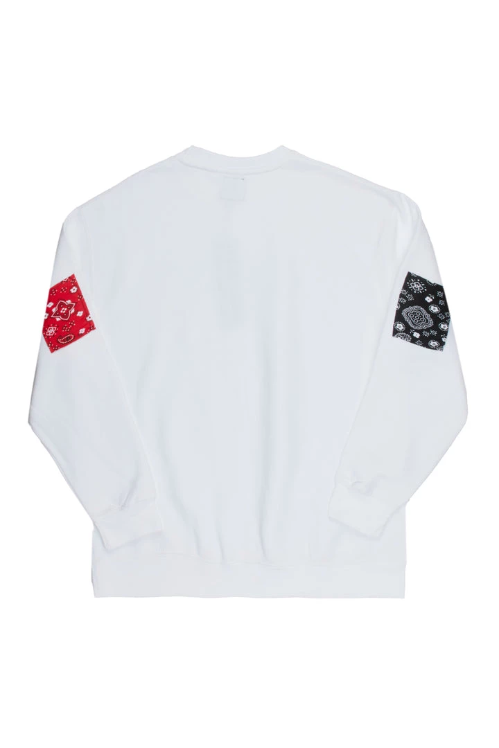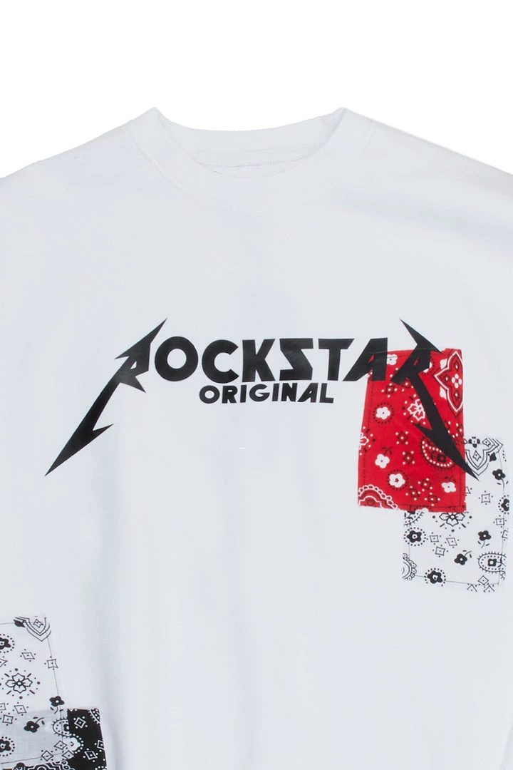 Rockstar Original Men’s crewneck in white. Featuring an ombre style RSO logo with printed cross graphics and paisley patches throughout. This signature Rockstar hoodie is designed with a front pocket, drawstring hood and premium cotton threading for a dope all day wear staple piece.