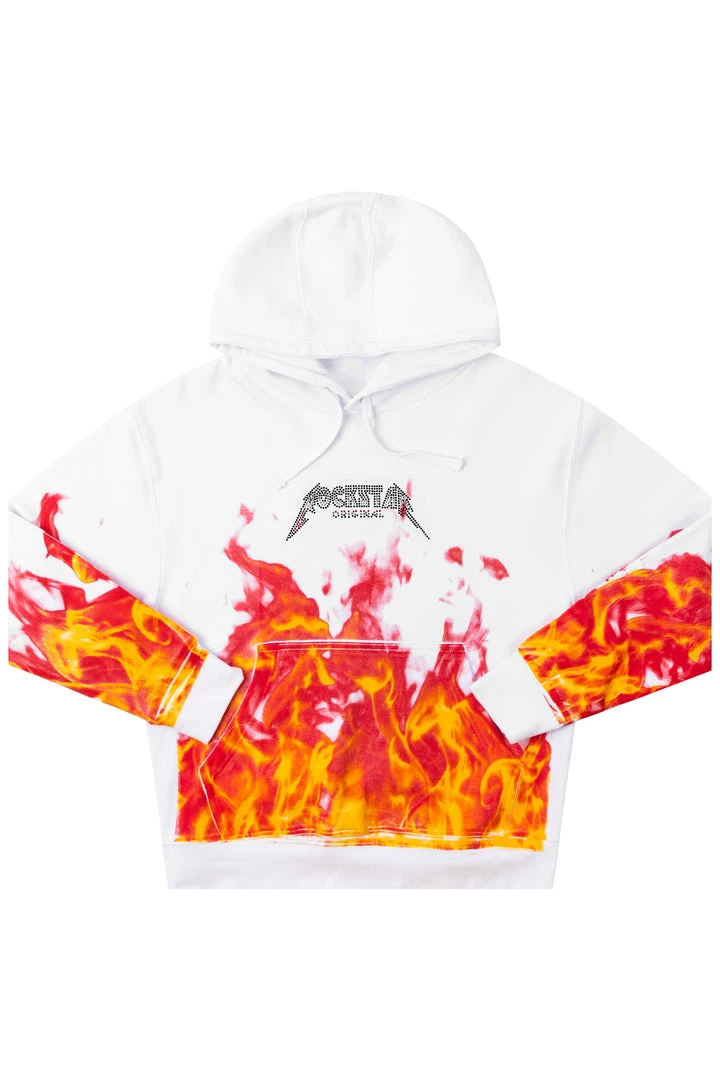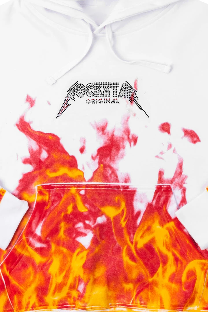 Rockstar Original men’s hoodie featuring a crystal designed with a graphic printed flame details all throughout. Front pockets with drawstring hoodie.