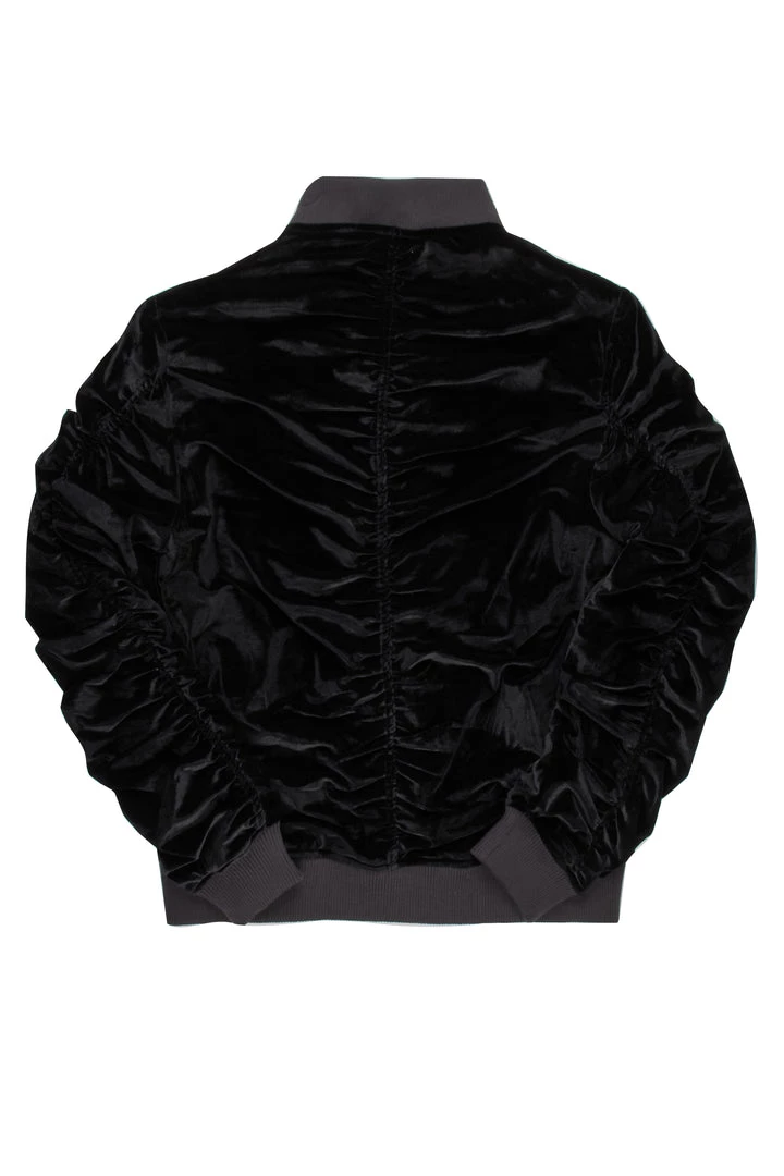 Rockstar Original Men’s velour jacket in black. Featuring a rhinestone RSO logo with rhinestone cross graphics throughout. Accenting ribbed hems and ruched detailing with a high quality zipper coin pocket on the sleeve, front zipper closure, dual front button pockets and premium polyester inner lining for all day comfort.