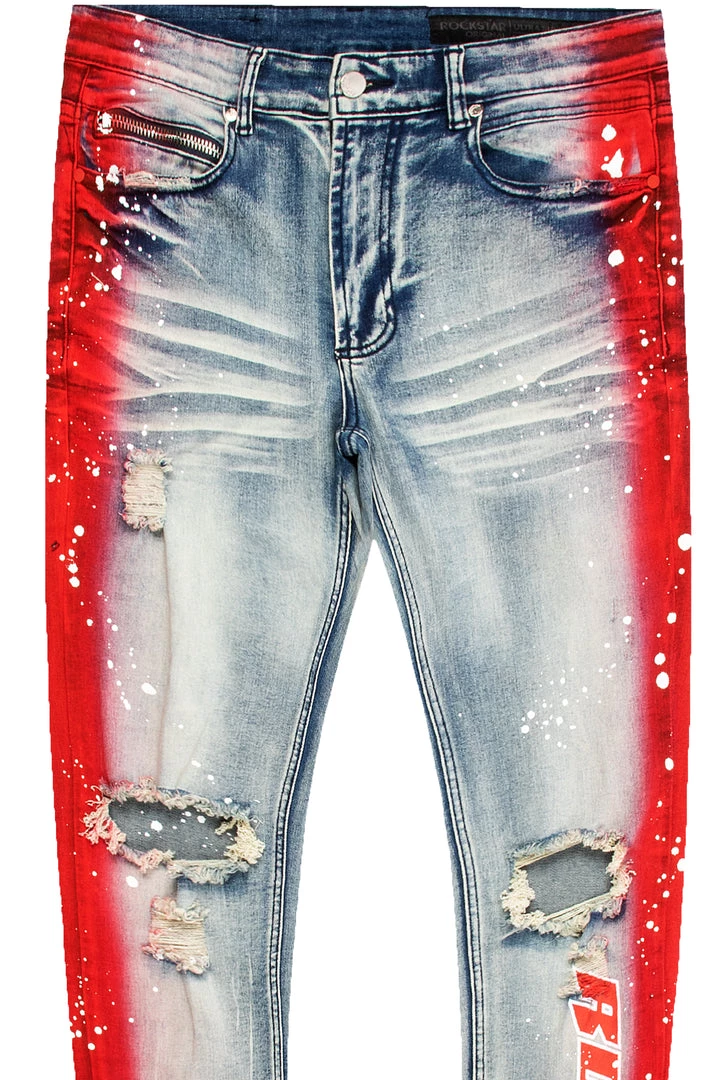Rockstar Original Men’s denim featuring light paint splatter design and graffiti highlights on the outer sides. Accenting a RSO logo with distressed detailing and high quality zipper coin pocket for versatility and convenience.