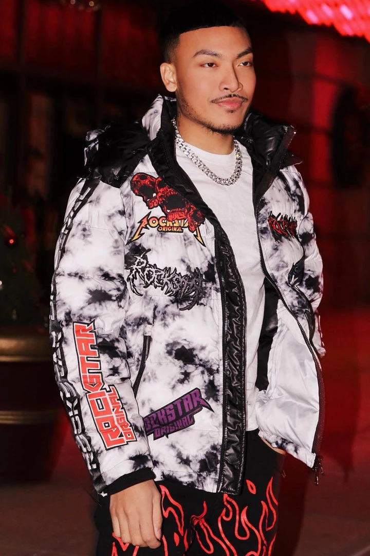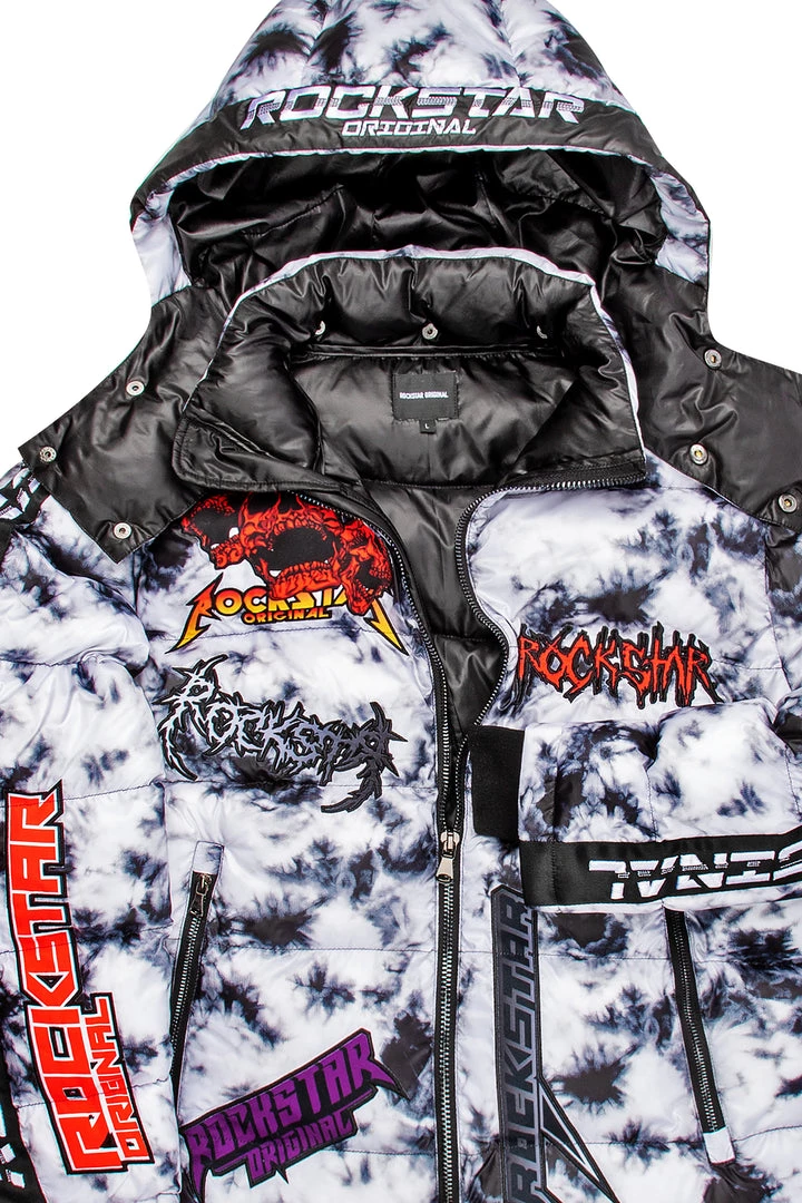Rockstar Original Men’s puffer jacket in marble. Featuring embroidered RSO logos and graphic patch designing throughout. Accenting versatile material to keep you cool, comfortable and functional. This new must-have bubble coat is styled with a removable button hood, front zipper pockets and a high quality zipper closure.
