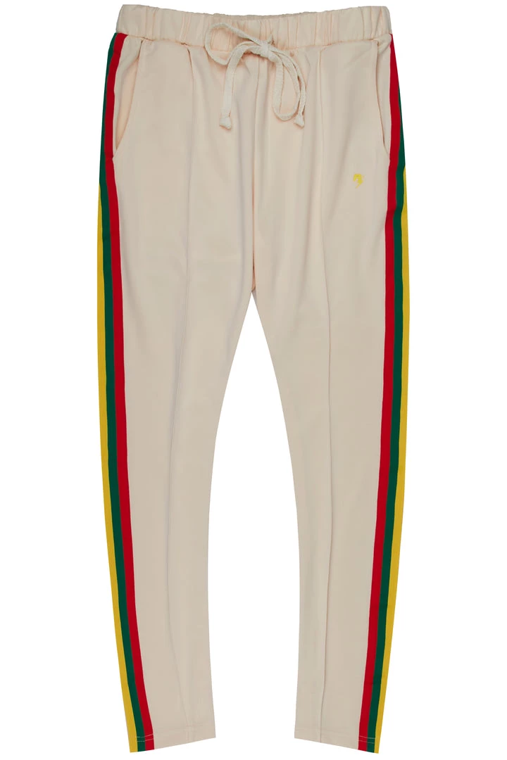 Rockstar Original Men’s track pant in beige. Featuring a printed RSO logo with multi color stripe detailing on the sides. Made with a drawstring waistband and side pockets.
