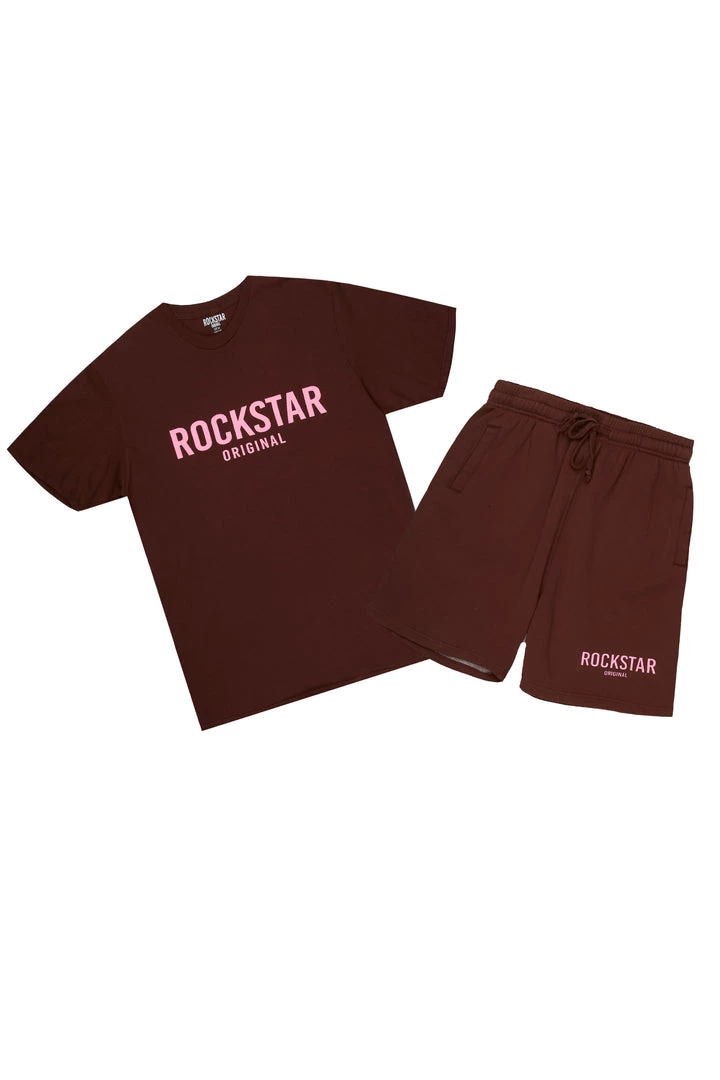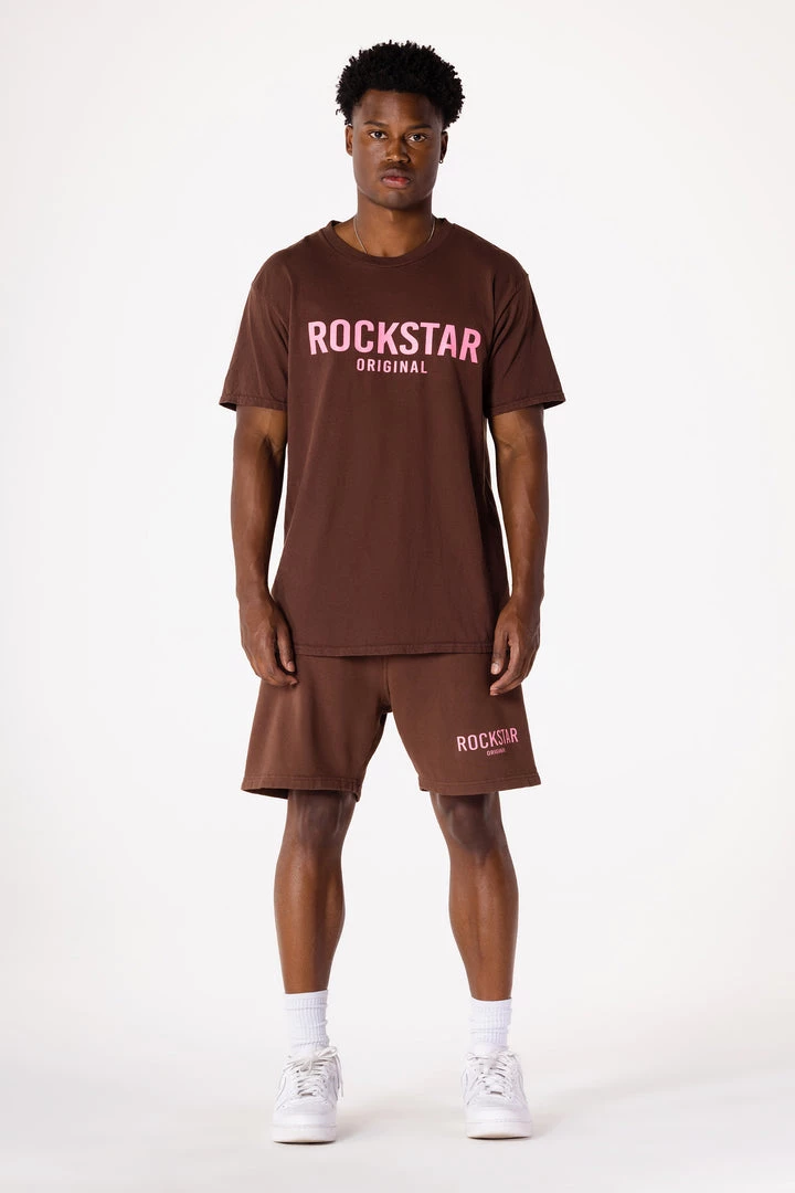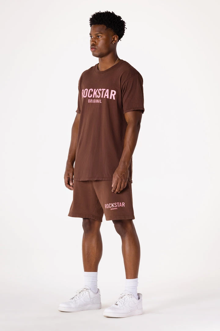 Rockstar Original Men’s two-piece essential short set in brown. Featuring clean RSO logos on the top and bottom. Tee accents a crew neckline with a relaxed fit while bottoms accent a drawstring waistband and side pockets. Designed with luxurious cotton for a super soft internal finish.