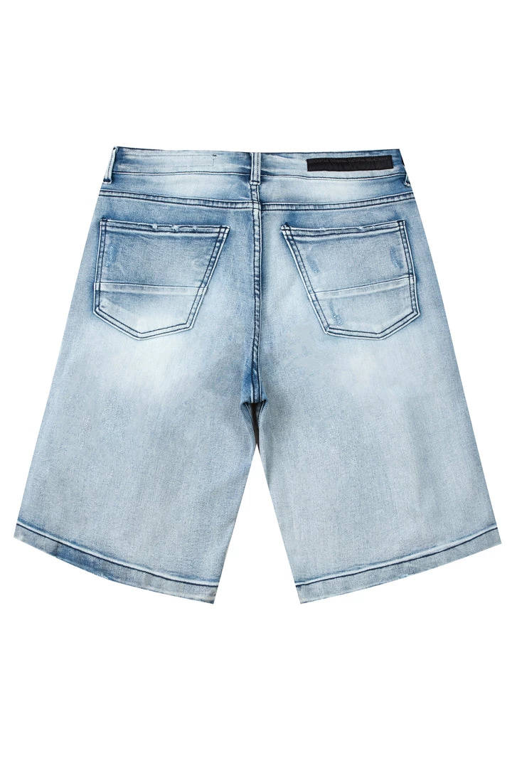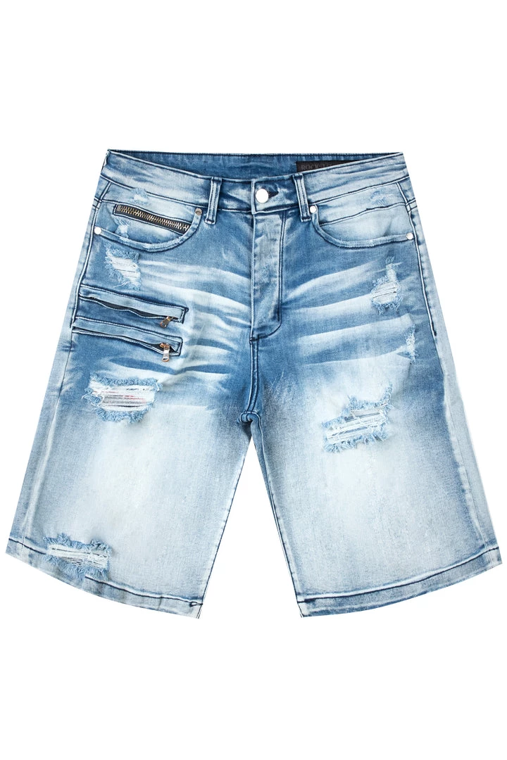 Rockstar Original men’s shorts featuring a basic 5 pocket design and distressed details. Light wash with high quality zipper coin pocket.