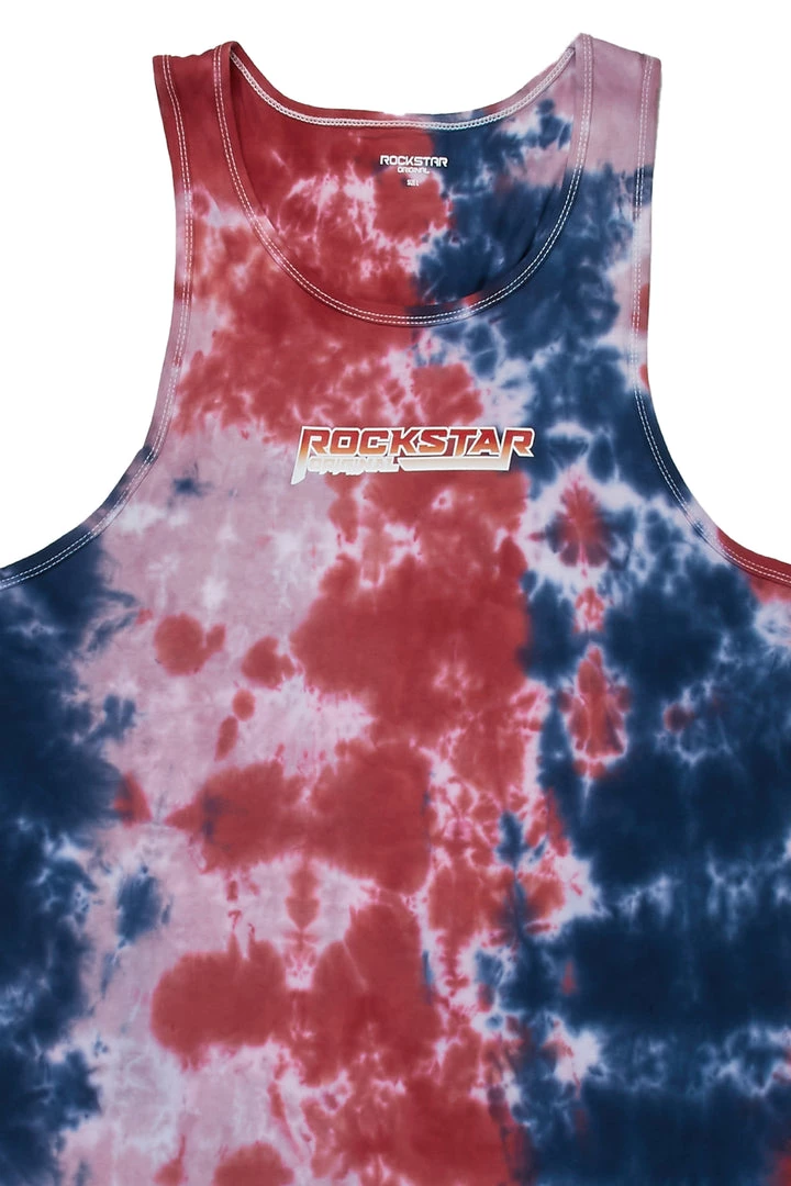 Rockstar Original Men’s tank in multi color tie-dye. Featuring a printed RSO logo across the chest with a crew neckline and relaxed fit. This essential tank top is made with premium cotton threading for all day comfort.