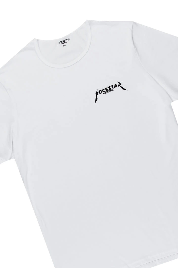 Rockstar Original Men’s tee in pure white. Featuring a printed RSO logo on the chest with a crew neckline and relaxed fit. This essential tee is made with premium cotton threading for all day comfort.