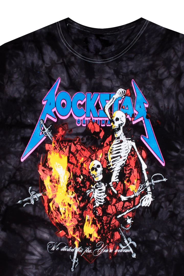 Rockstar Original Men’s tee in tie-dye black. Featuring a RSO logo with a multi color skeleton graphic to match. Accenting a relaxed fit with a crew neckline and premium cotton threading for maximum comfort and style.