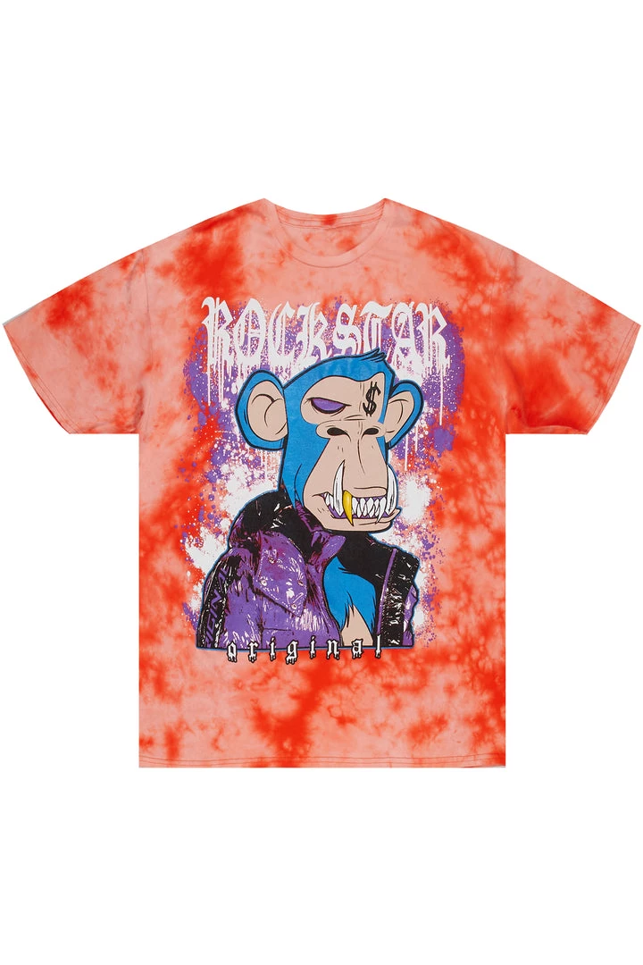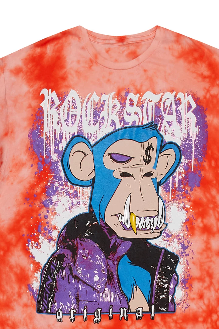 Rockstar Original Men’s tee in tie-dye orange. Featuring a printed RSO logo with a multi color graphic to match. This unique tee accents a crewneck line, lightweight wear and premium cotton threading for style and comfort.