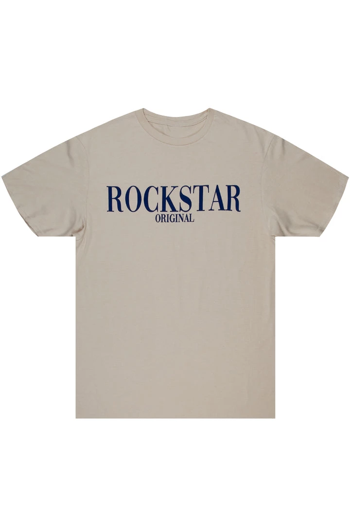 Rockstar Original Men’s tee in beige. Featuring a puff printed RSO logo, crew neckline and relaxed fit. This essential tee is made with premium cotton threading for all day comfort.