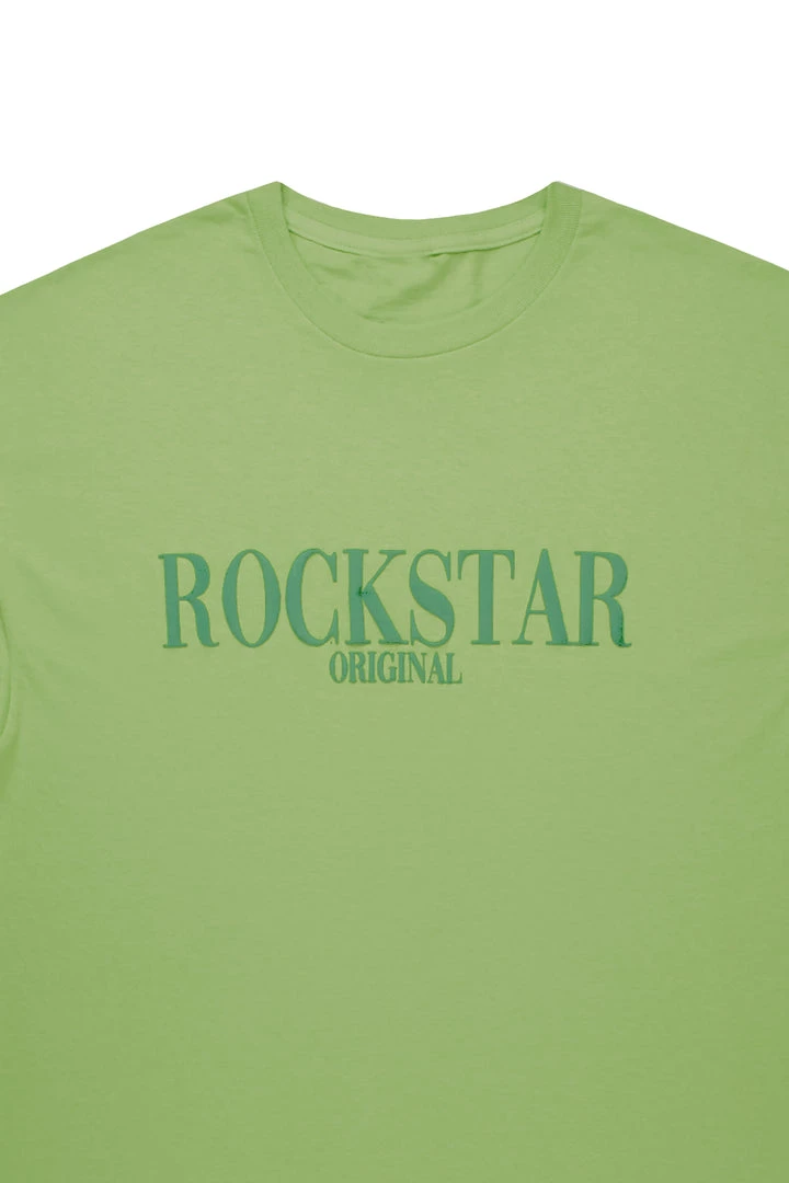 Rockstar Original Men’s tee in green. Featuring a puff printed RSO logo, crew neckline and relaxed fit. This essential tee is made with premium cotton threading for all day comfort.