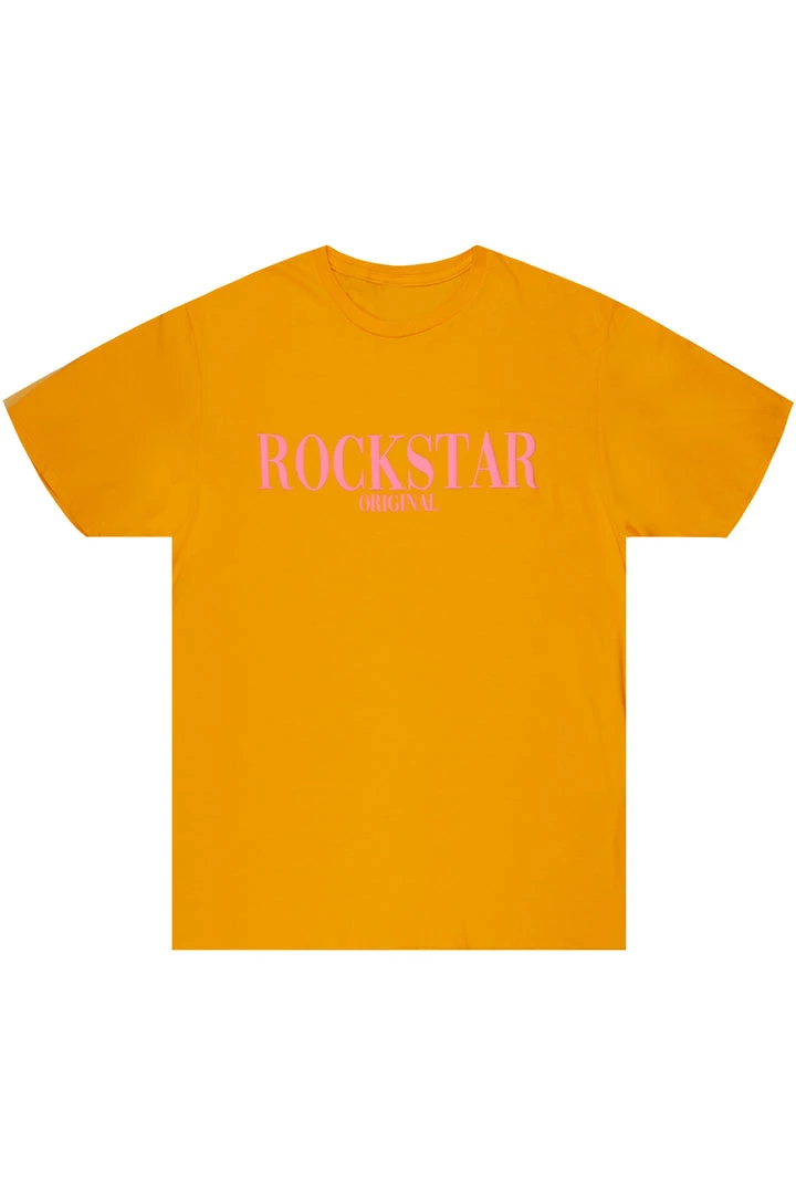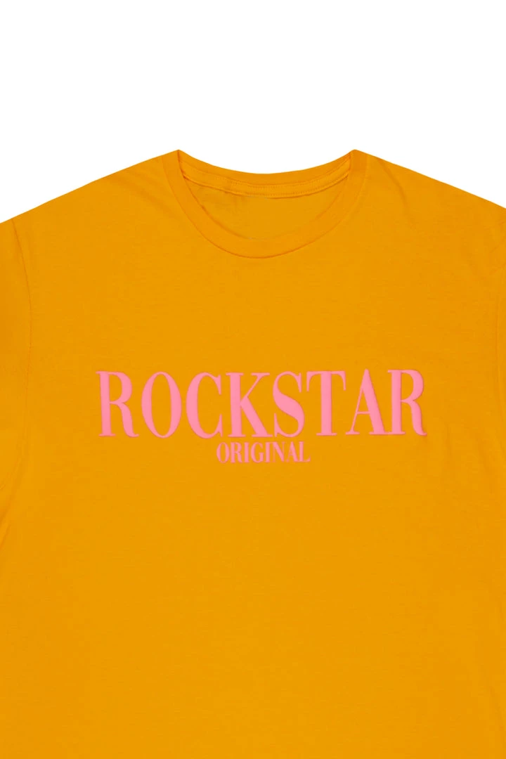 Rockstar Original Men’s tee in orange. Featuring a puff printed RSO logo, crew neckline and relaxed fit. This essential tee is made with premium cotton threading for all day comfort.