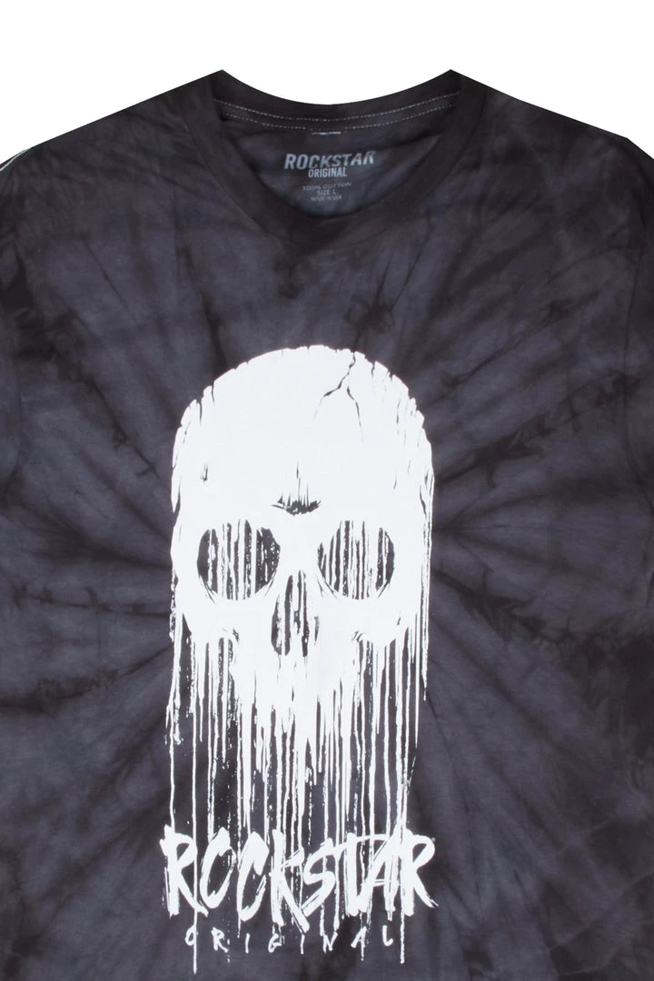 Rockstar Original Men’s tee in tie-dye black. Featuring a RSO logo with a skull graphic to match. Accenting a relaxed fit with a crew neckline and premium cotton threading for maximum comfort and style.