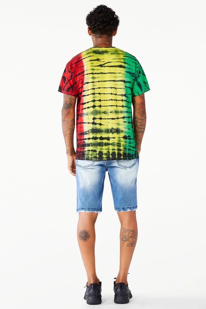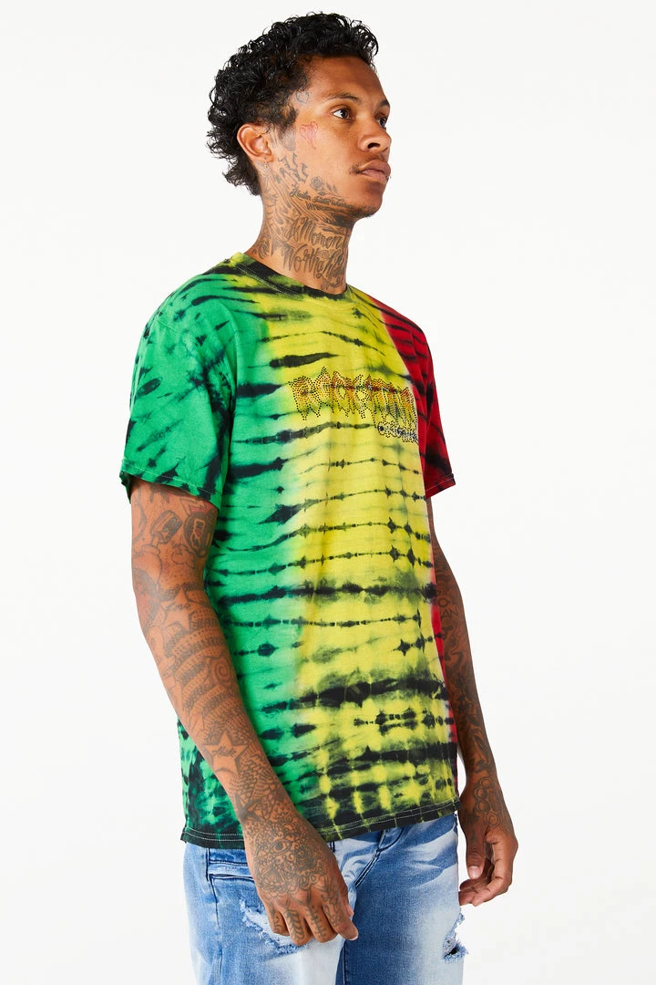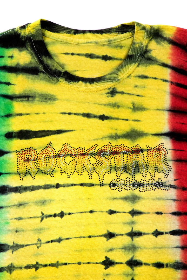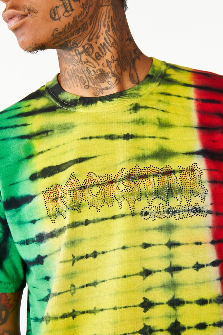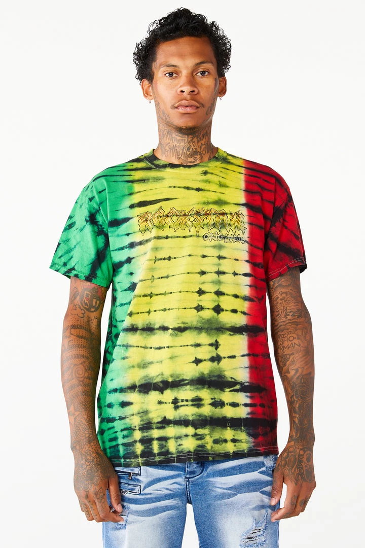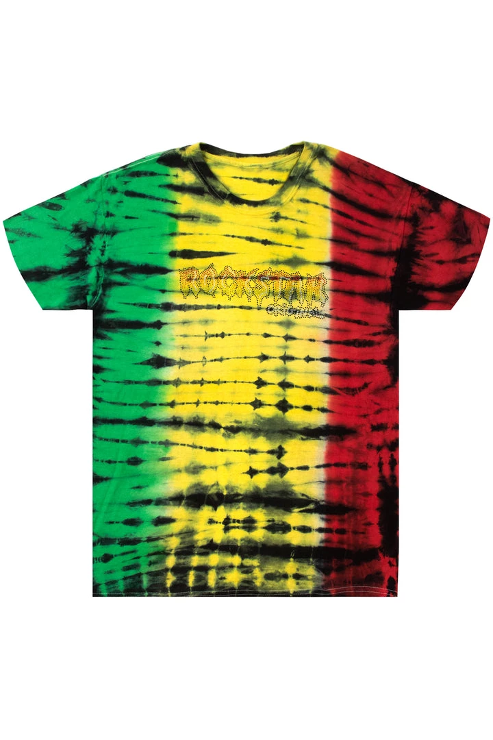 Rockstar Original men’s tee featuring a crystal designed RSO logo with a color block design and a tie dye wash all throughout. Made with premium cotton.