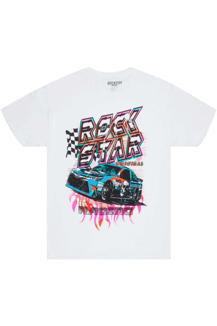 Rockstar Original Men’s tee in white. Featuring a printed RSO logo with multi color graphics to match. This unique tee accents a crewneck line, a relaxed fit and premium cotton threading for style and comfort.