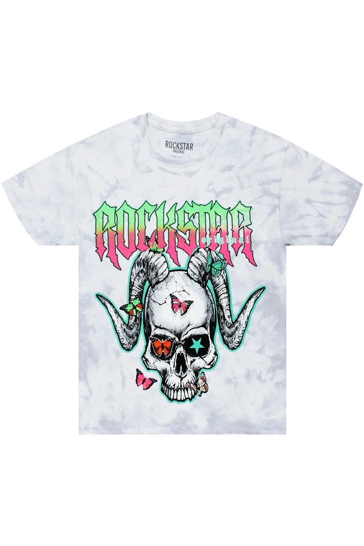 Rockstar Original Men’s tee in tie-dye white. Featuring a duo-tone RSO logo with a multi color skull graphic to match. Accenting a relaxed fit with a crew neckline and premium cotton threading for maximum comfort and style.