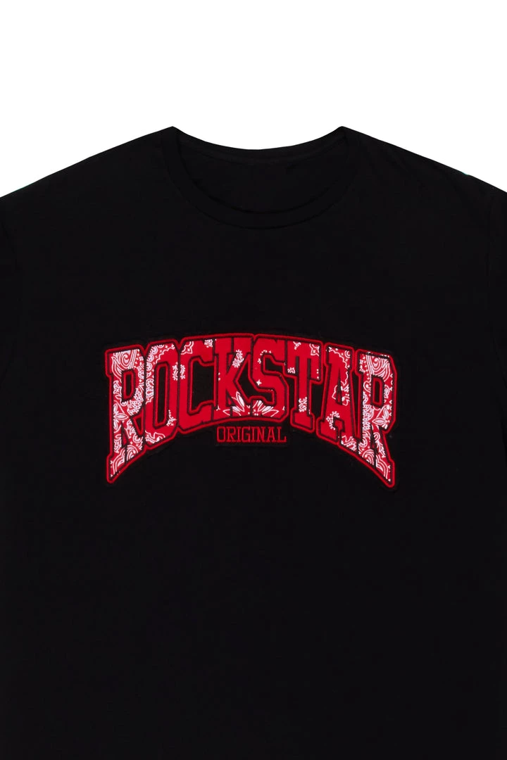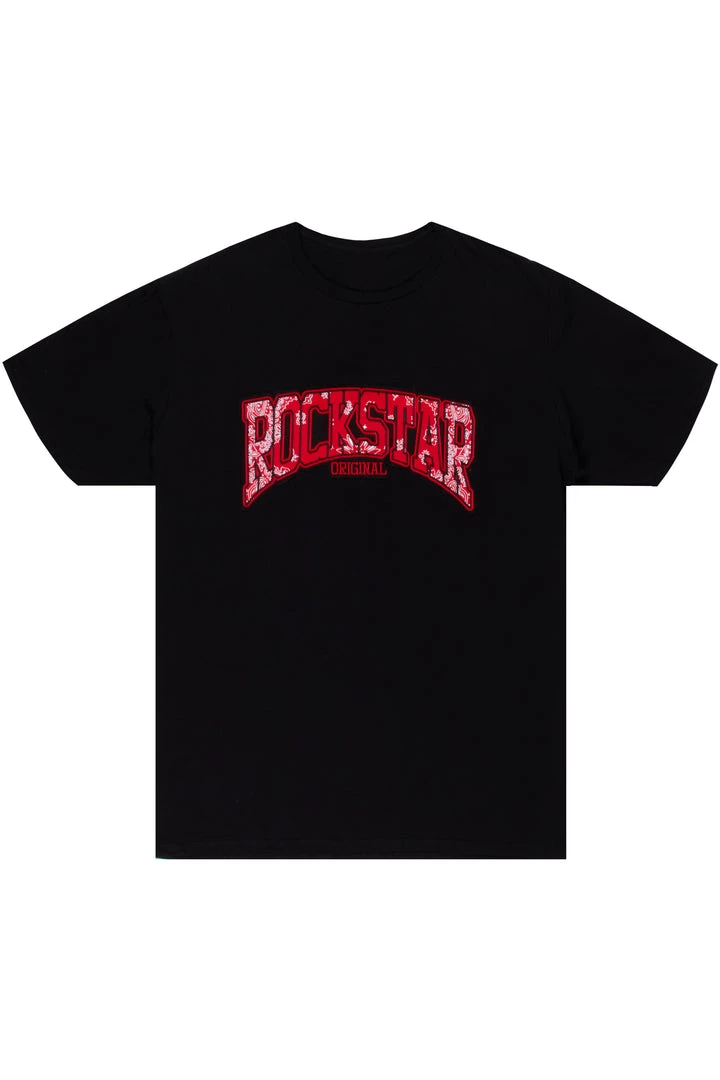 Rockstar Original Men’s tee in black. Featuring a printed paisley RSO logo across the chest. This unique tee accents a crewneck line, lightweight wear and premium cotton threading for style and comfort.