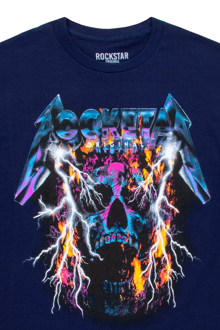 Rockstar Original Men’s tee in navy. Featuring a printed RSO logo with a multi color graphic to match. This unique tee accents a crewneck line, lightweight wear and premium cotton threading for style and comfort.Â