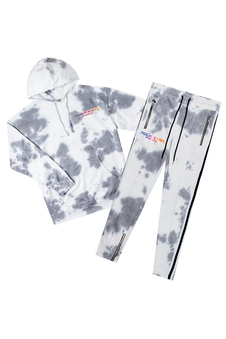Rockstar Original Men’s two-piece tracksuit set in marble tie-dye. Featuring a multi color RSO logo on the front and back, front pocket and a drawstring hood on the top. Bottoms accent drawstring waistband, high quality zipper pockets and zipper ankle hems.