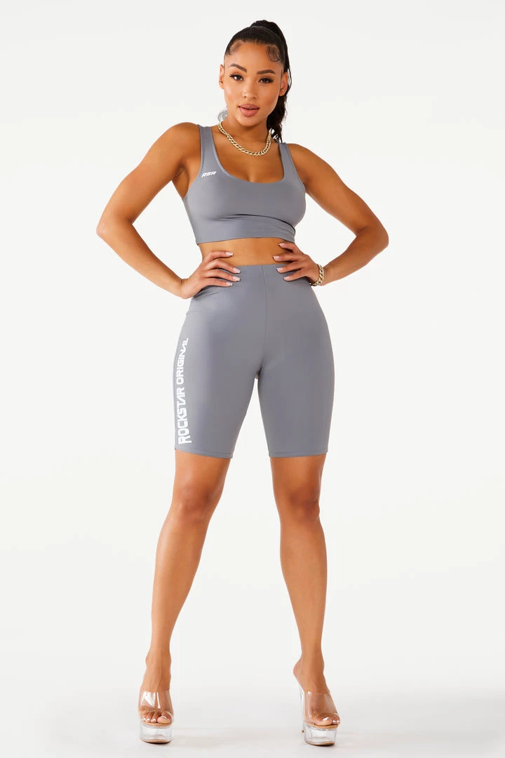 Rockstar Original women’s two-piece biker set accented with curved RSO logos.
