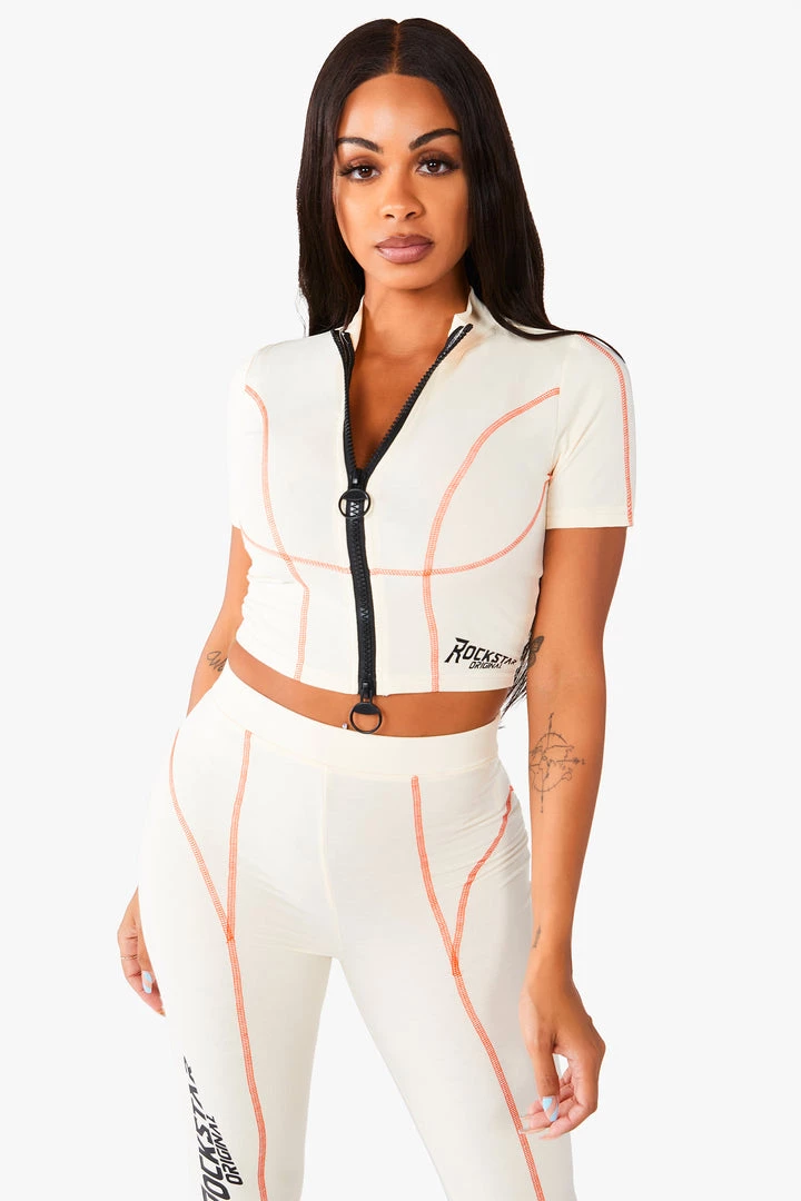 Rockstar Original Women’s two-piece biker set with contrast seams and bold Rockstar logos.