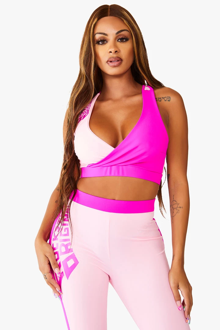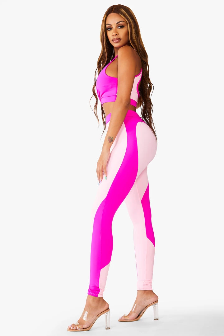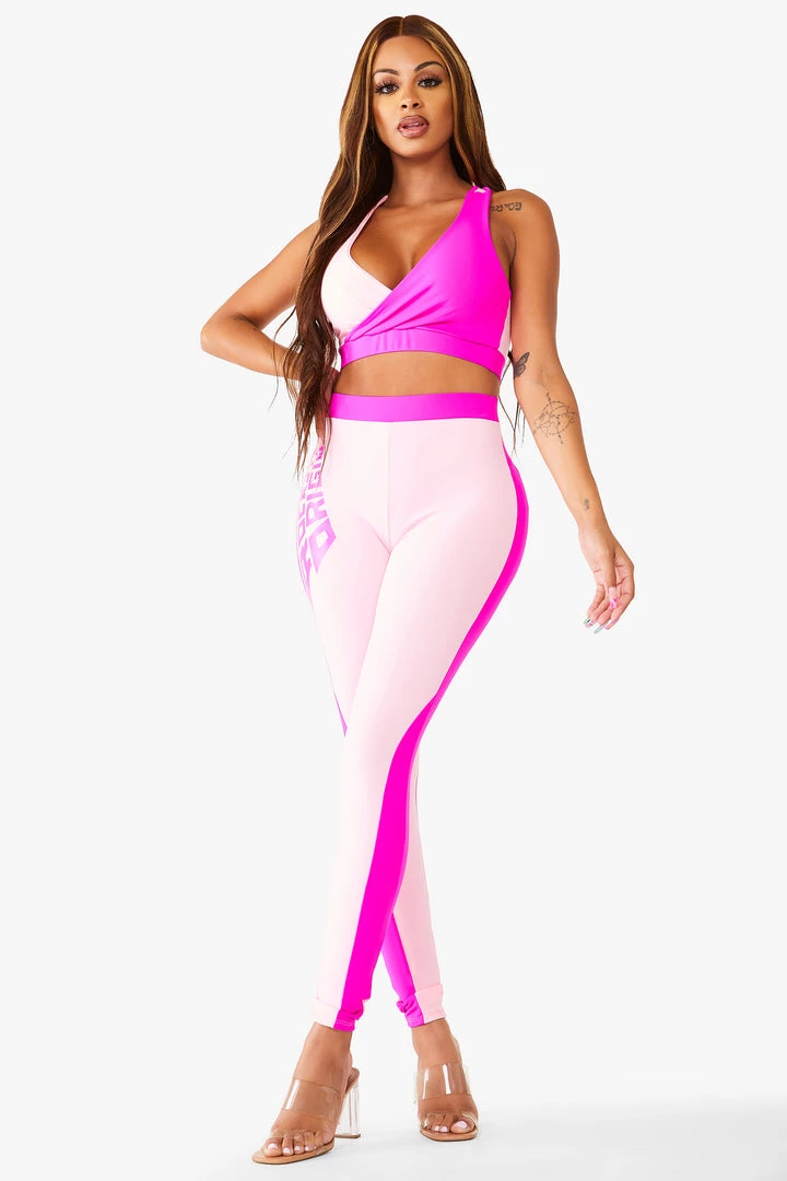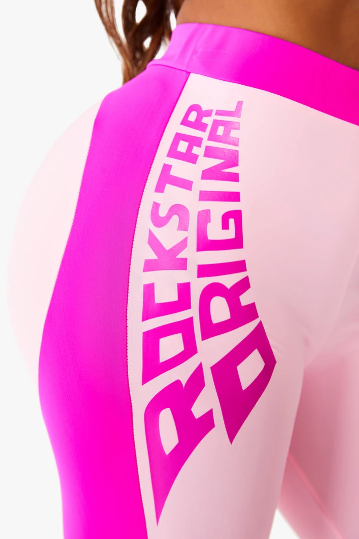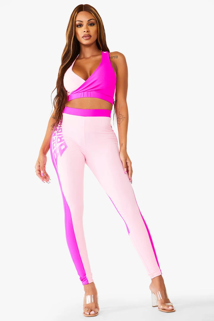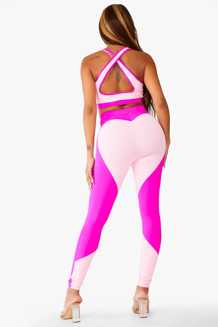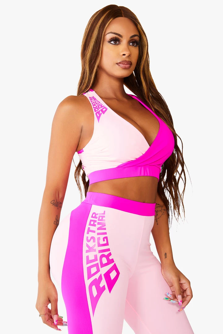 Rockstar Original Women’s two-piece active legging set with matching sports bra and heart detailing with bold Rockstar Original logos.