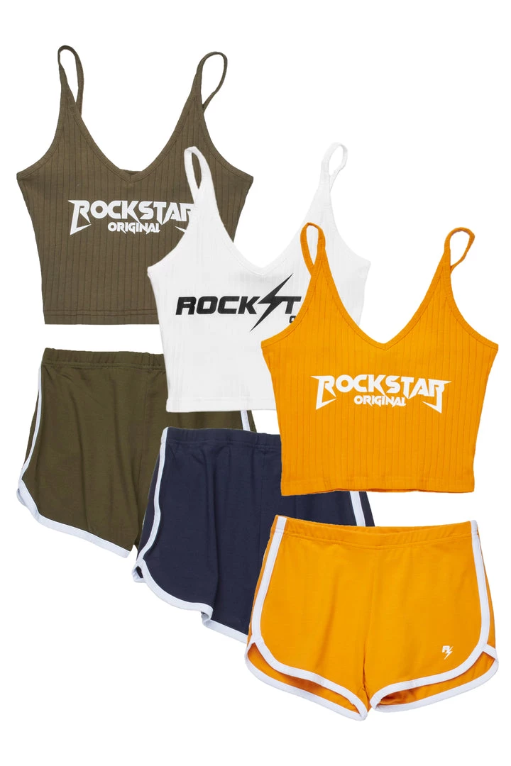 Items in boxes will vary, but you can expect each box to include 1 everyday short set, 1 lace up short set, 1 everyday legging set, 1 ribbed active set and 1 booty lifting boy short!