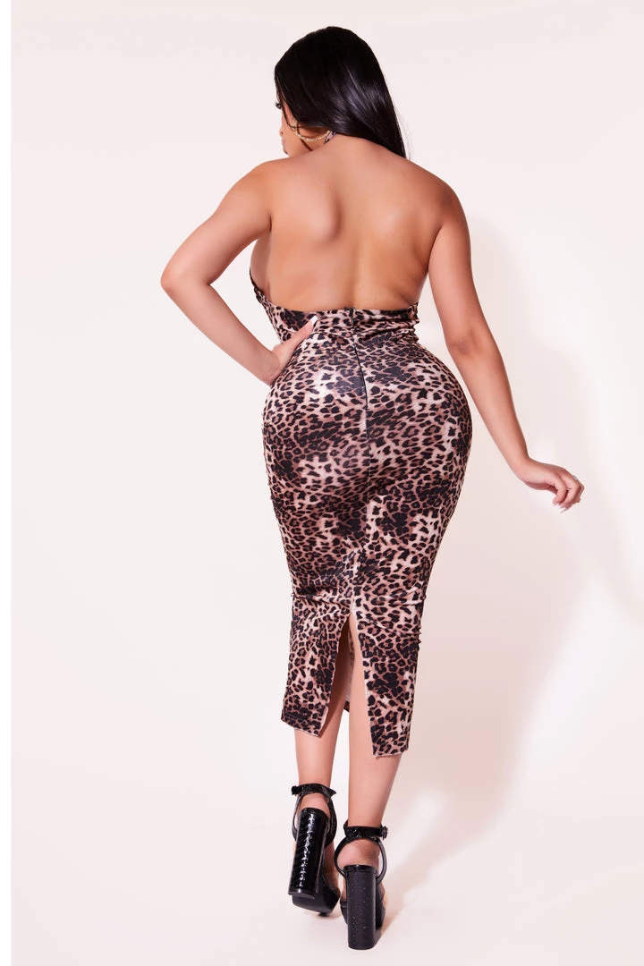 Rubi Rose x Rockstar Original Women’s bodycon dress in fiercest cheetah babe print. Featuring a midi length with a bold cut-out pattern between a cross-tie deign and high quality posterior zipper closure for the perfect combo of sexy and savage.