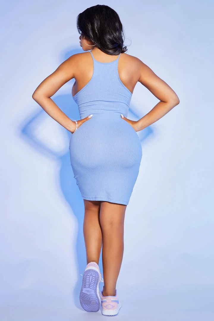 Rockstar Original Women’s mini dress in blue. Featuring a halter neckline with printed logos and a paisley Varsity number to match. Accenting a form-fitting silhouette and a mini length. Style with sneakers for a classic Rockstar babe look!