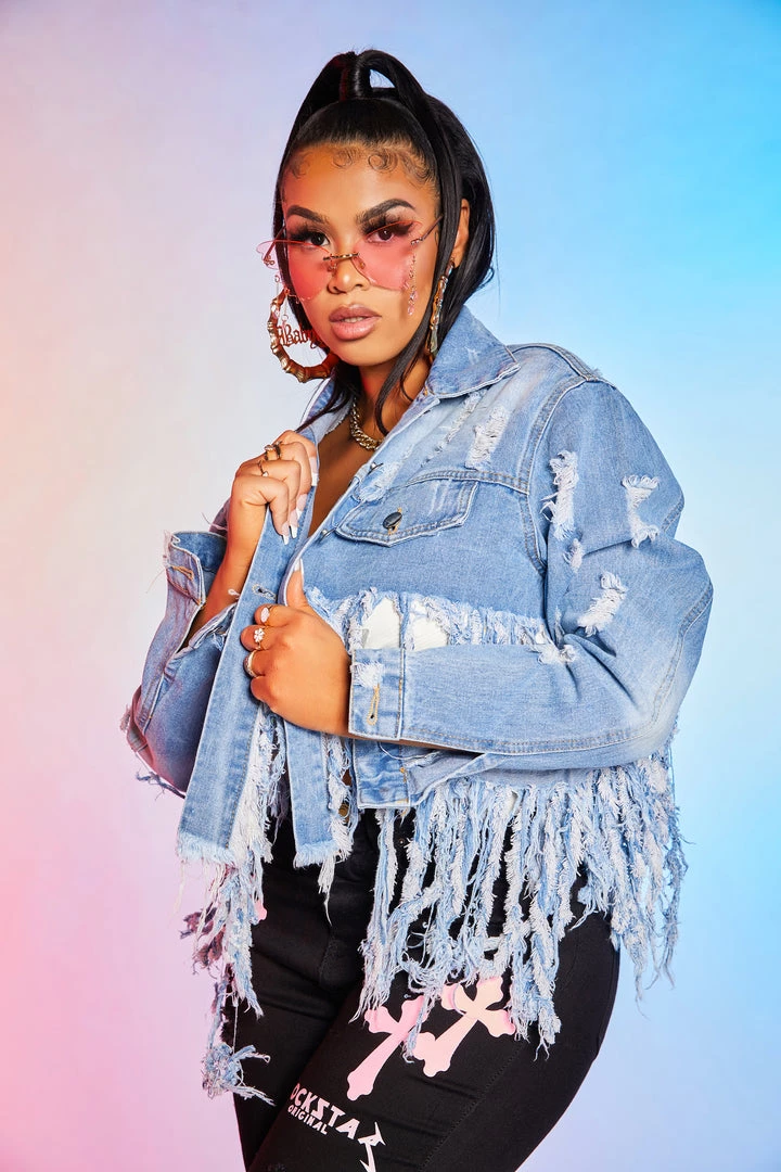 Rockstar Original Women’s denim jacket in light wash. Featuring a posterior rhinestone RSO logo with a bold frayed finish throughout. This must-have jacket accents a collared neckline with a high quality front button closure, dual chest pockets and a cropped length. Style with your favorite little black dress or denim jeans and corset top for the ultimate Rockstar babe OOTD.