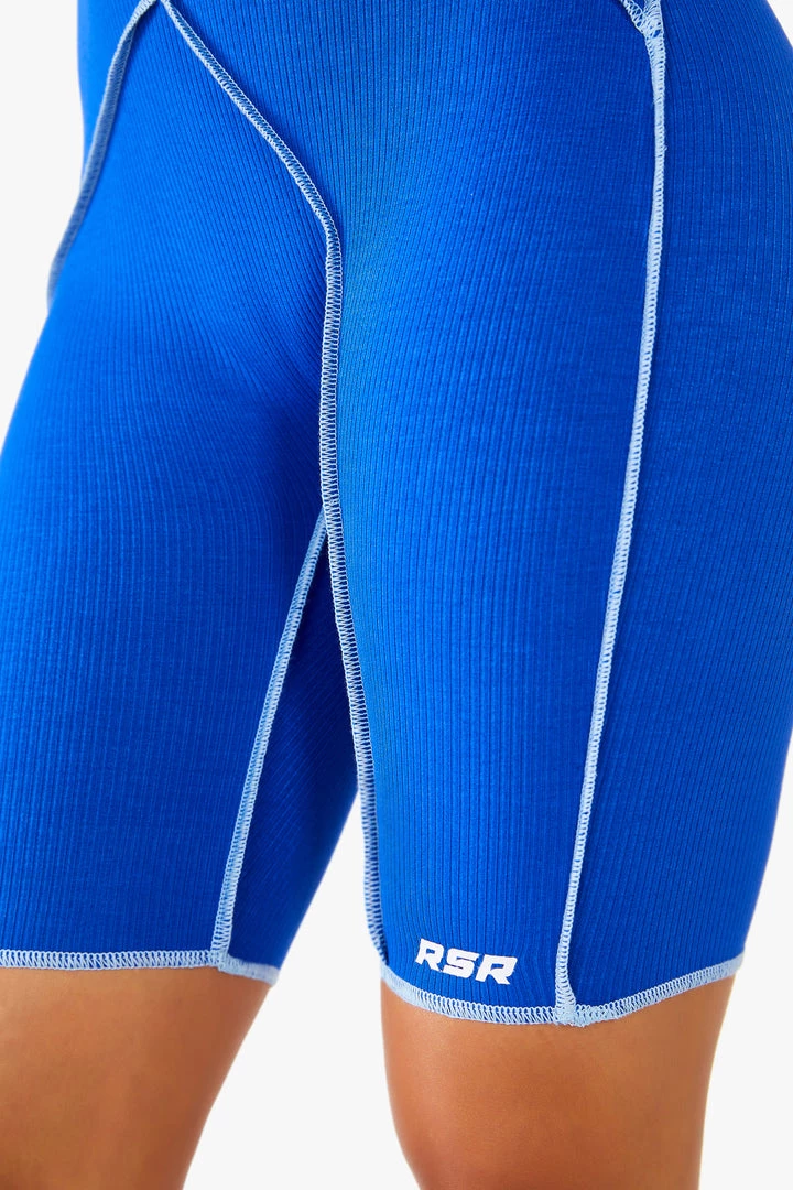 Rockstar Original Women’s lace-up romper in rib-jersey with contrast piping.