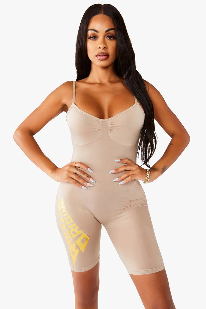 Rockstar Original Women’s spaghetti strap dressy biker short romper with adjustable straps and bold Rockstar Original logos, a perfect closet basic for day or night.