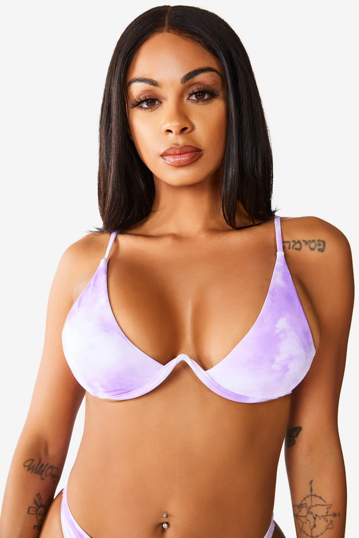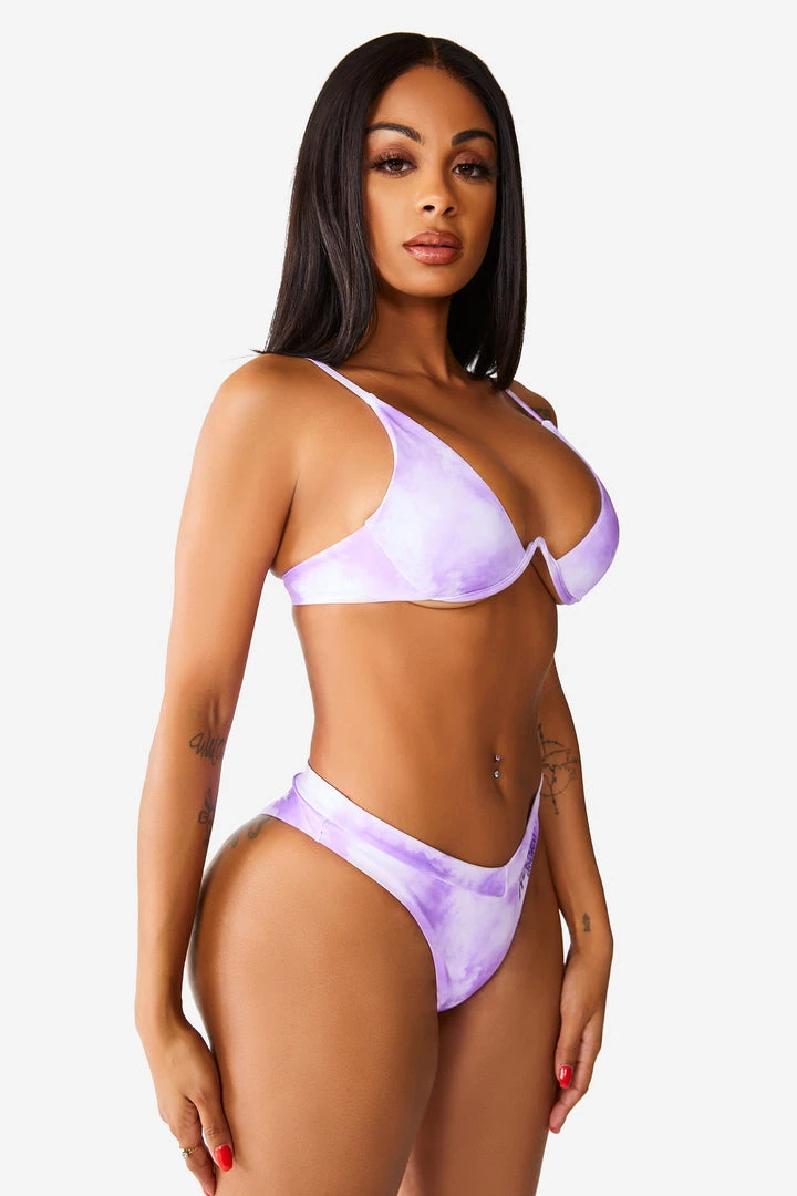 Rockstar Original Women’s 2-piece tie dye underwire bikini with cheeky bikini back and Rockstar bold logos.