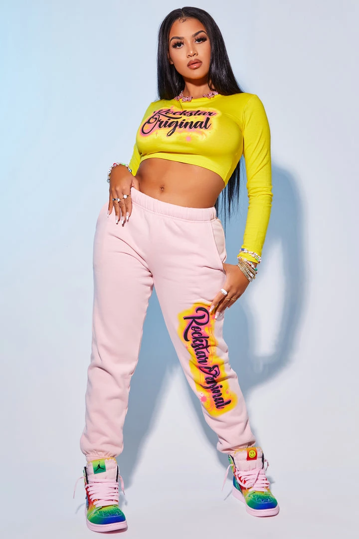 Rockstar Original Women’s long sleeve top in original yellow. Featuring a printed urban graffiti style RSO logo against a cropped length and crew neckline. Accenting premium cotton threading and lightweight wear for a gorgeous all day comfort staple piece.