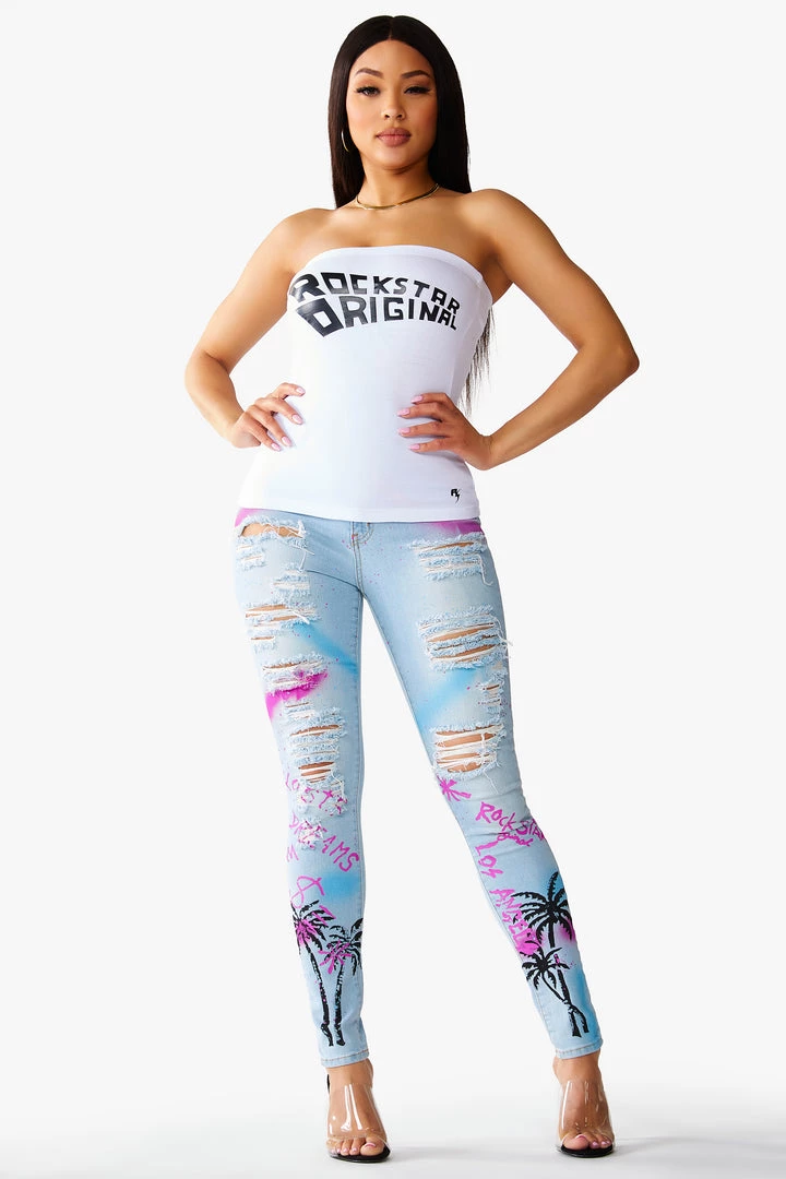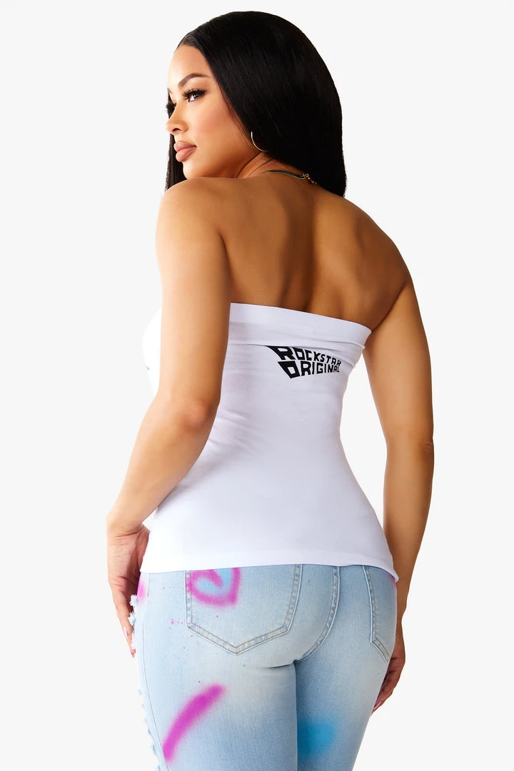 Rockstar Original Women’s basic long line tube top that perfectly molds to the body with curved Rockstar Original logo on the chest and back.